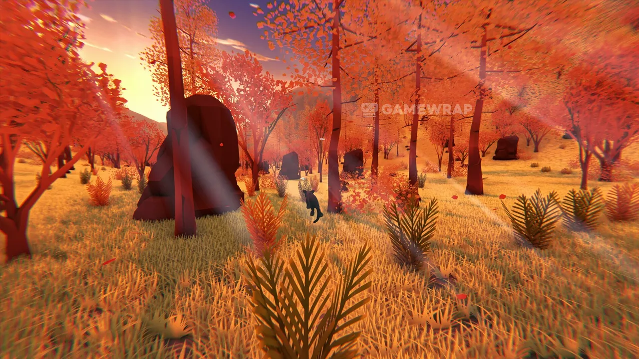 Players will explore a winter environment with cherry blossoms blooming in the snow, a fall environment during golden hour, a mysterious forest with strange and fantastical creatures, and a dark forest with tall and twisted trees.