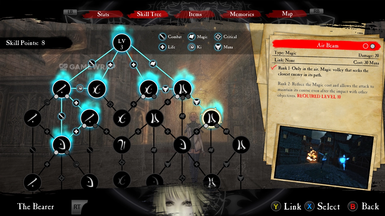 In Anima Gate of Memories, players take on the role of two characters, a woman named The Bearer and an ancient creature named Ergo Mundus, who are bound together by a powerful curse.