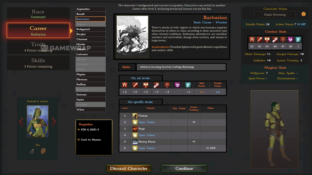A career-based system will have your characters start as street ruffians, squires, hunters or even beggars; later on, you can move into new careers, including advanced ones like Knight, Loreseeker, Assassin or Battlemage.