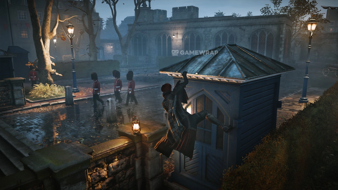 In London, the systemic vehicles offer an ever-changing environment. Drive carriages to chase your target, use your parkour skills to engage in epic fights atop high-speed trains, or make your way amongst the boats of the River Thames.