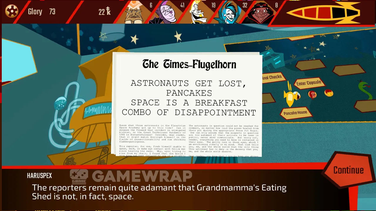 - Charm The Nation, or Else – Prepare your astronauts to perform for the nation on sensationalist TV programs and in the tabloids. Succeed in zany trials to win glory, or fail spectacularly and face deadly consequences.