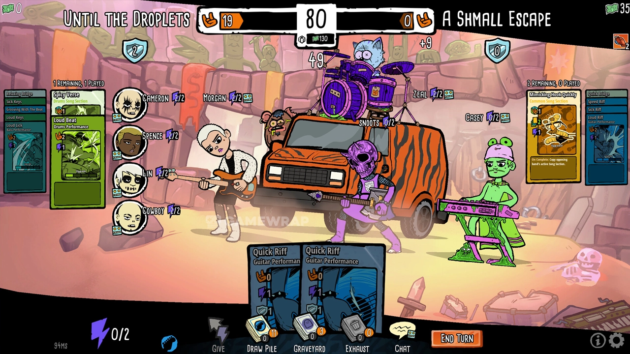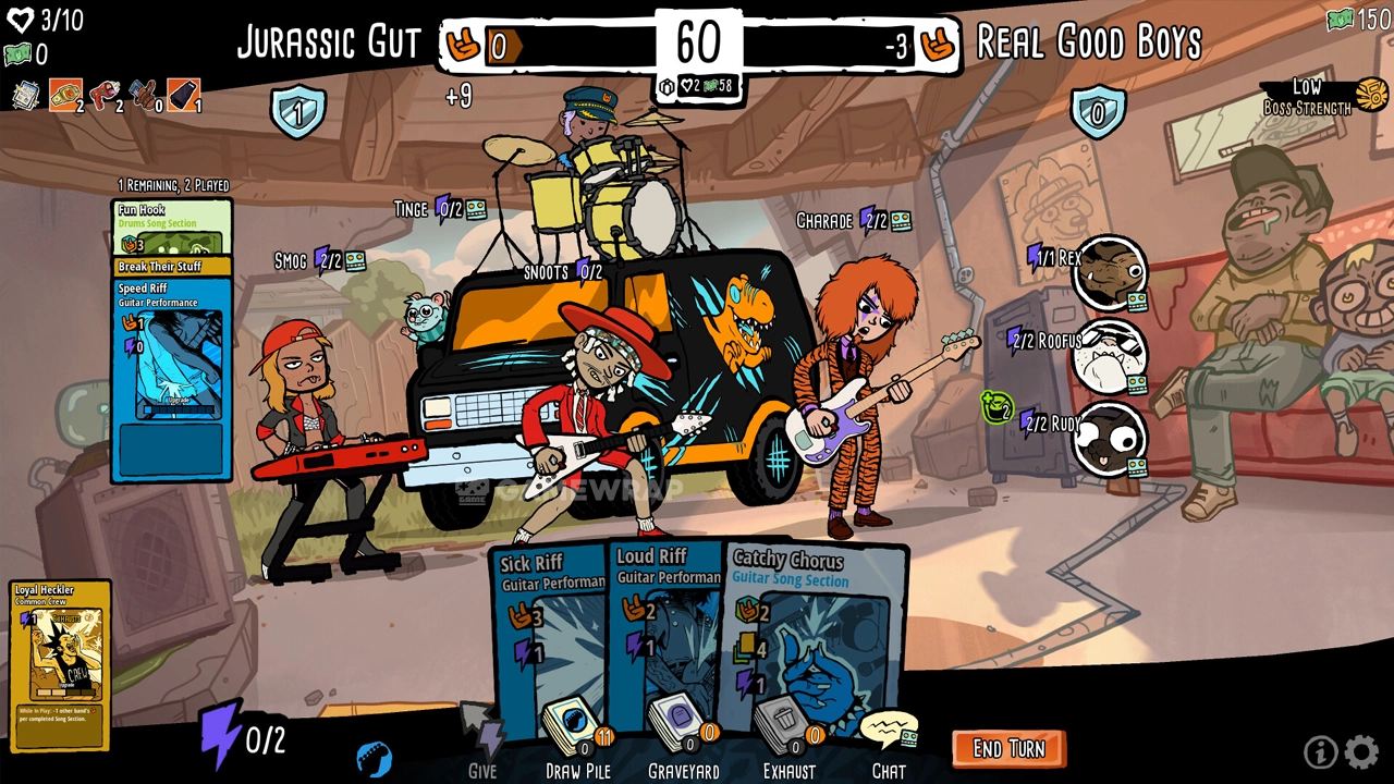 In this battle of the band's roguelike, the winner takes all to become a rock & roll legend. As the player progresses through the ranks from a garage band hero to a monster axe-wielding maestro, their deckbuilding prowess will be challenged in the ultimate card game showdown.