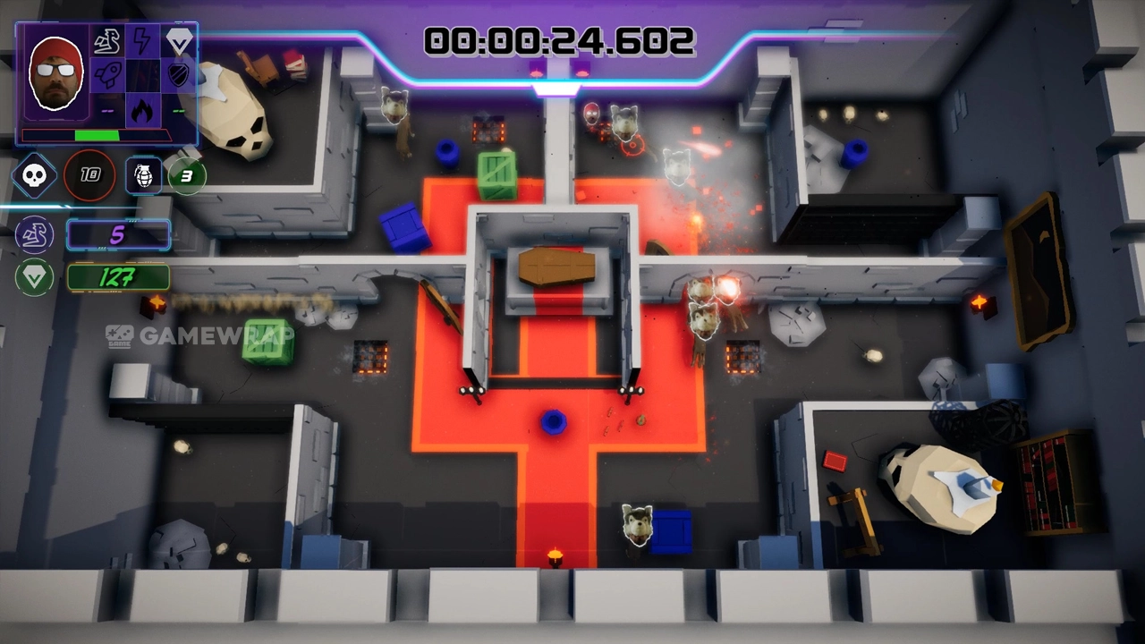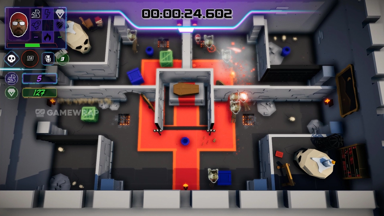 Players are placed in creep-infested, boundary-shifting arenas, where they need to build up hunting points and collect treasure to afford different Power-Ups.