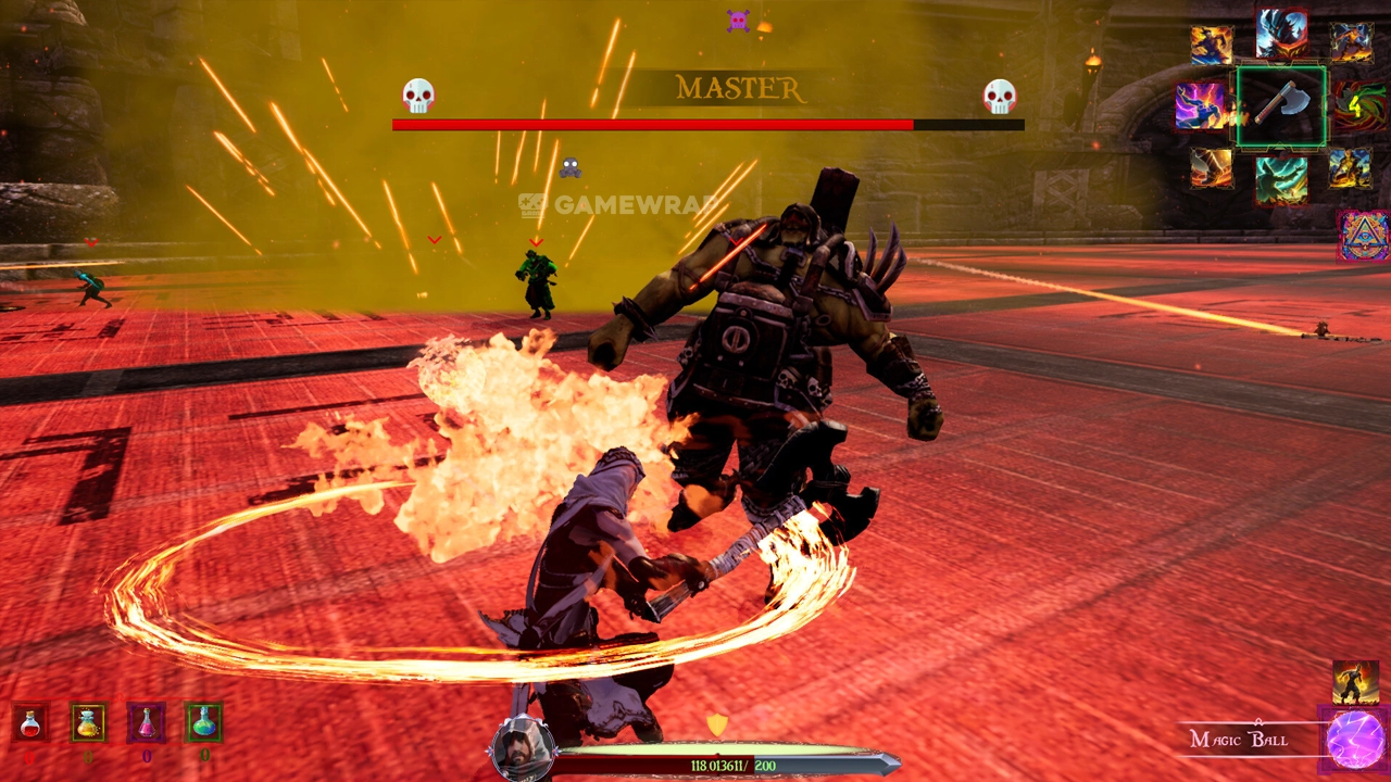 Choose your fighting style. Be a sword master and enjoy slashing enemies, use heavy weapons to quake the ring, or use the magic and never get close to these creatures!