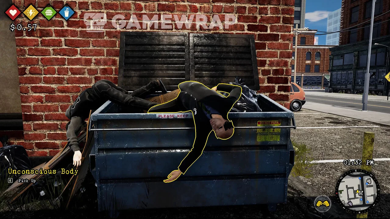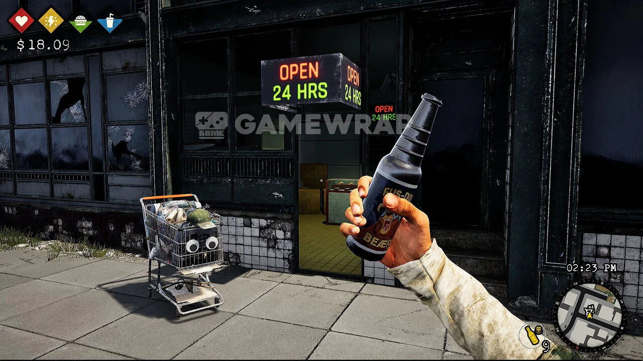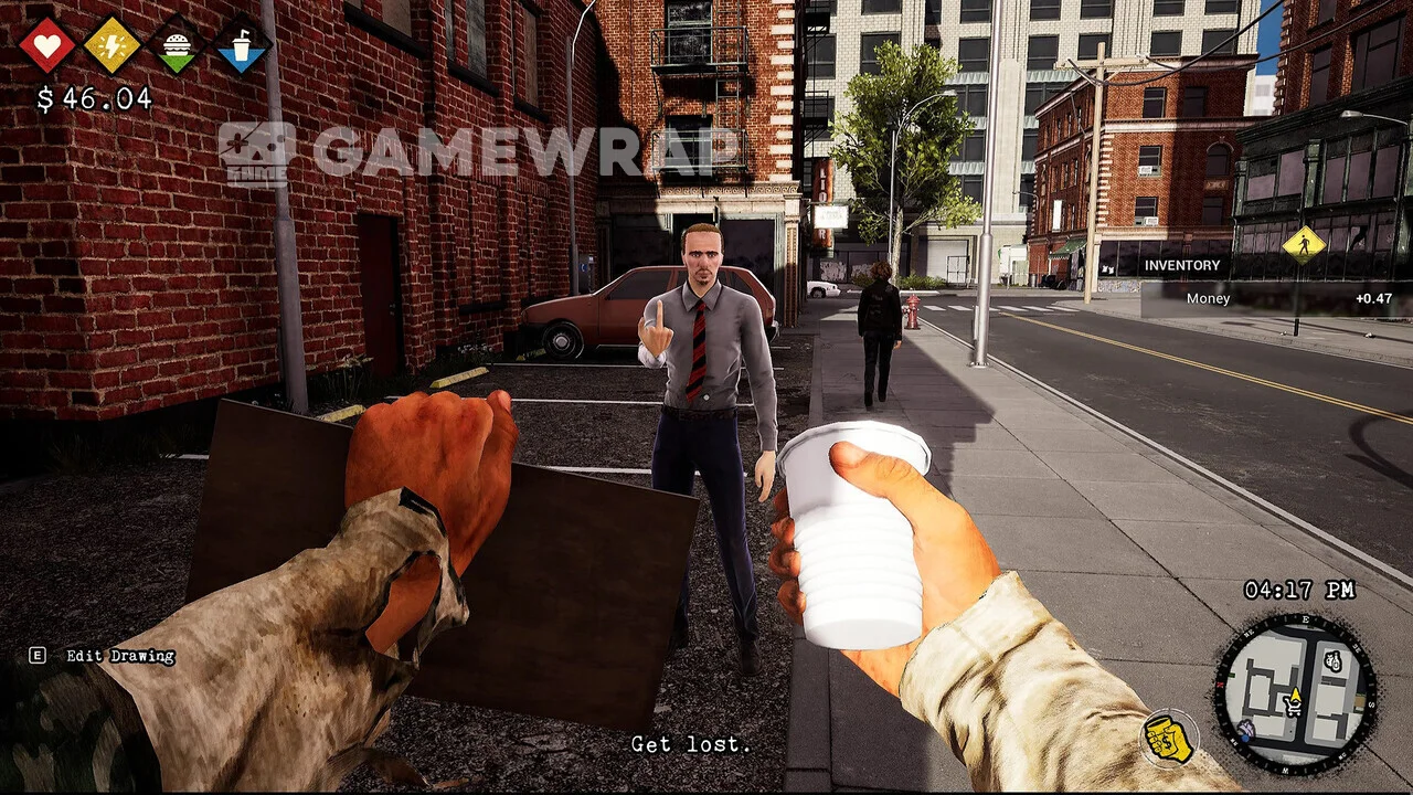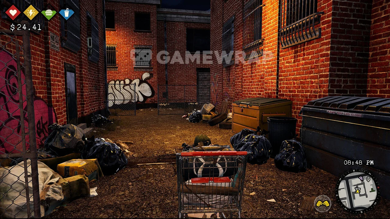 The game features a sandbox-style open world, where the player must scavenge for resources and money, such as food, water, and shelter. The player must also maintain their character's hygiene and mental health, as well as avoid being arrested by the police or beaten up by rival gangs.