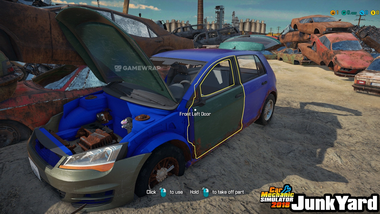 The game offers a detailed level of car disassembly, allowing you to take parts out and put them back together realistically.