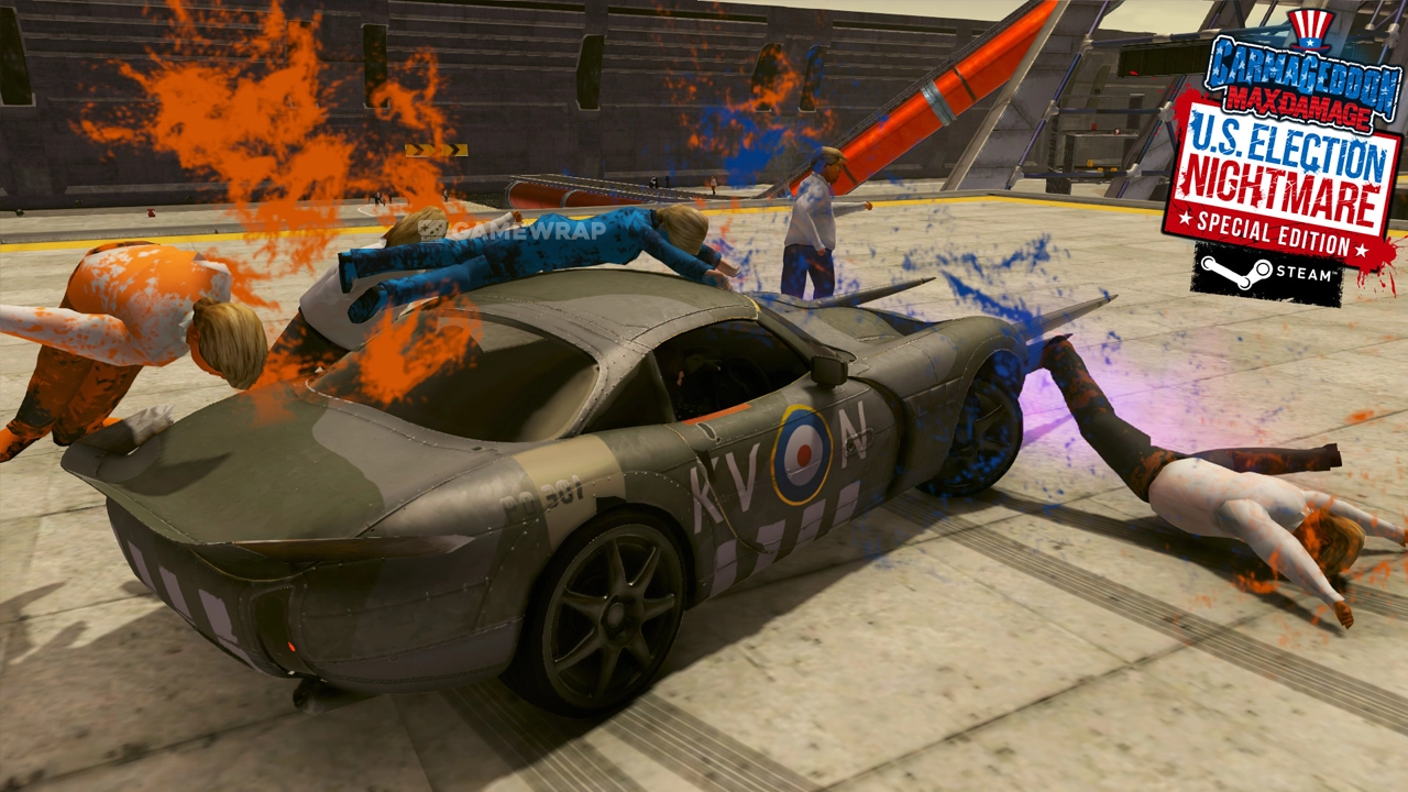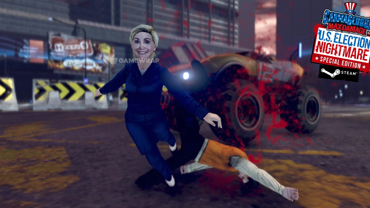 The original PC release of Carmageddon: Max Damage launched with a “US Election Special” mode, taking inspiration from topical current events - as two of the least-liked meat sacks on the planet slugged it out to become the Most Powerful Person On Earth.