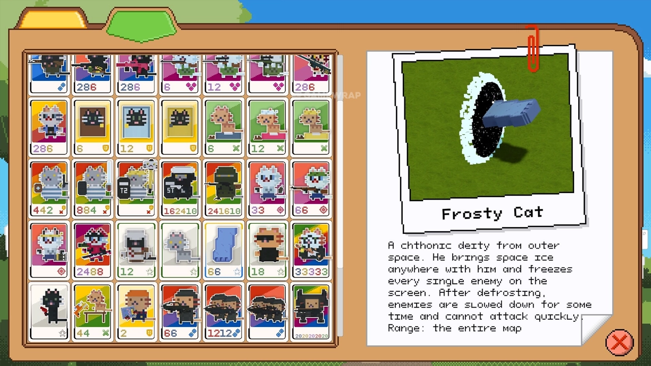 Defend your territory with a brutal arsenal of weaponry. From powerful rifles that reach the enemy at a distance to death-defying ninjas with blades sharper than any groomer's scissors, strategically place your feline soldiers to ensure victory on the battlefield.
