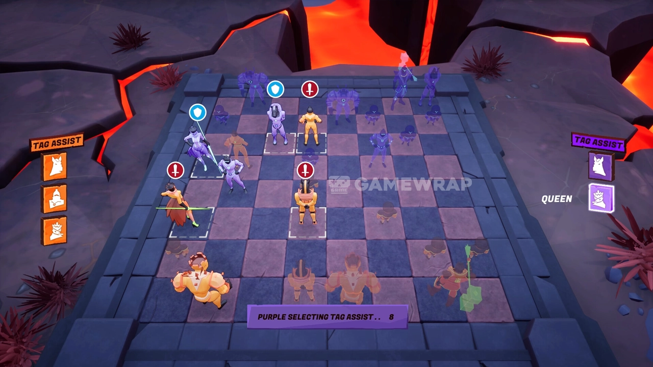 The attacker and defender will be able to make use of tag-assist by other pieces in proximity, and the attacker will have an advantage by having their Ultimate ready to pull from the get-go.