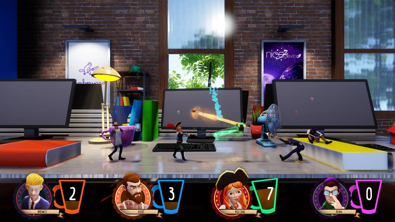 Coffee is your health bar and every hit ejects the precious liquid up in the air for anyone to take. Experience dramatic reversals and tense stand-offs as you fight till the last drop with up to four players.
