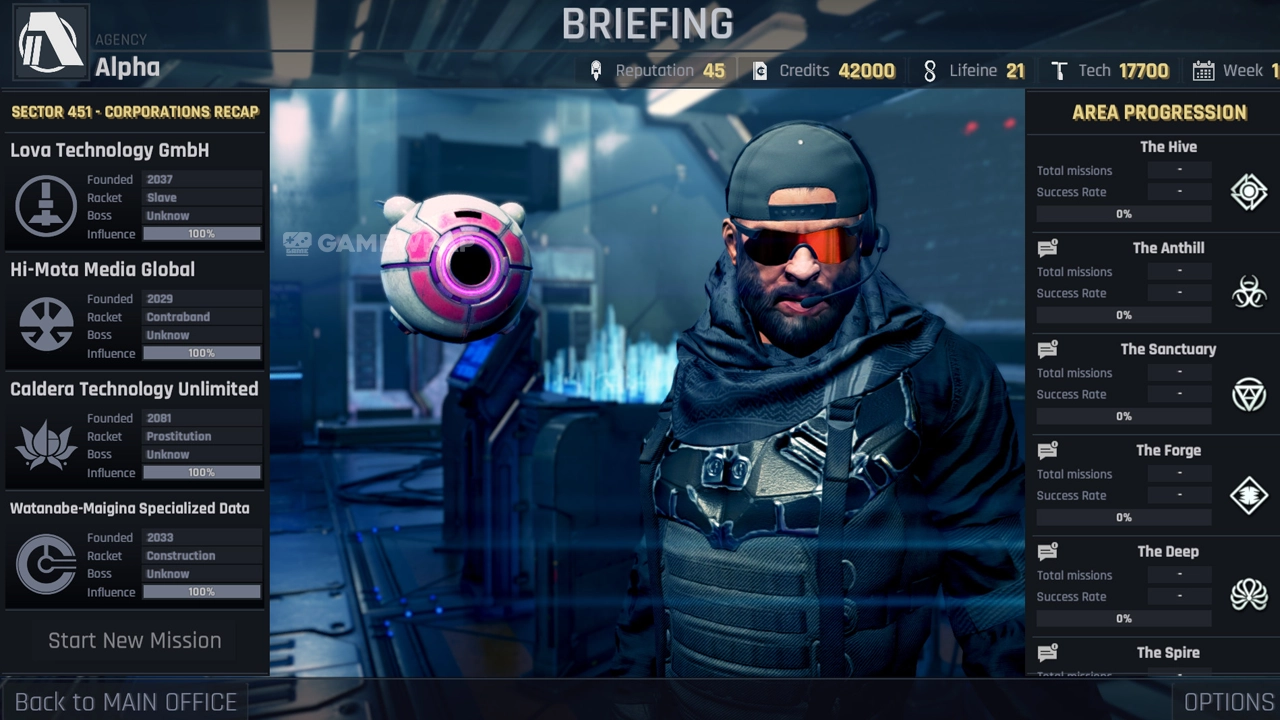 You are the CEO of a Special Agency, instructed by the Senate of Conglomerate City to restore the order in sector 451, where corrupted corporations have established their turfs.