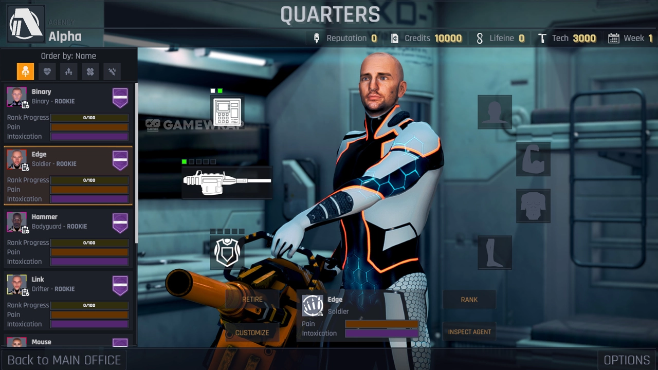 - Manage your base between missions, where you can clone new soldiers and equip them for battle.