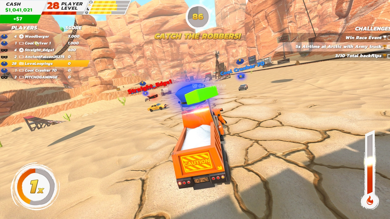 Destroy a gigantic beach ball, catch robbers as a cop, or steal the king’s crown; these are just a few examples of the 10 fun game events this game has to offer. Participate in these random competitive events, beat your opponents to earn the most cash, and buy awesome new cars or customisations.