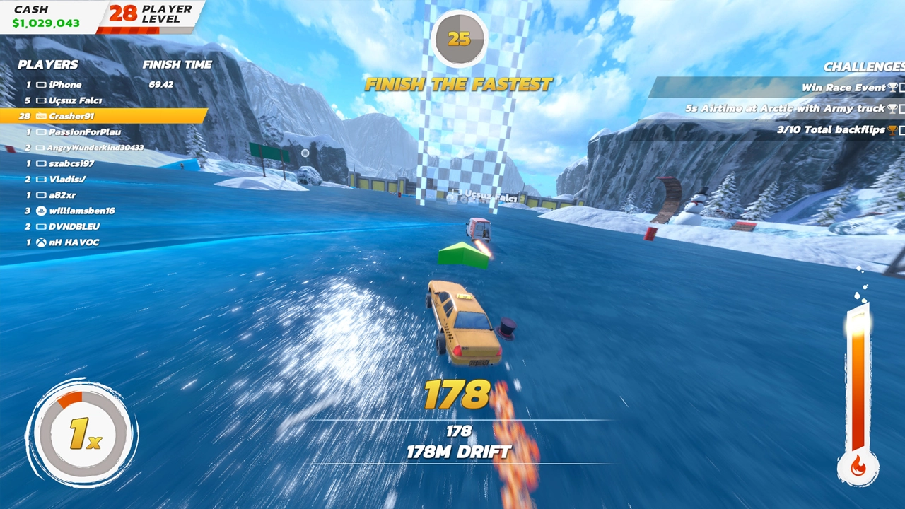 Collect over 50+ vehicles and customise your car with funky antennas, boosts, and unique number plates with your in-game name on them. Reach the maximum player level to prestige and show who the real Crash Drive 3 boss is! Solid golden car, anyone?