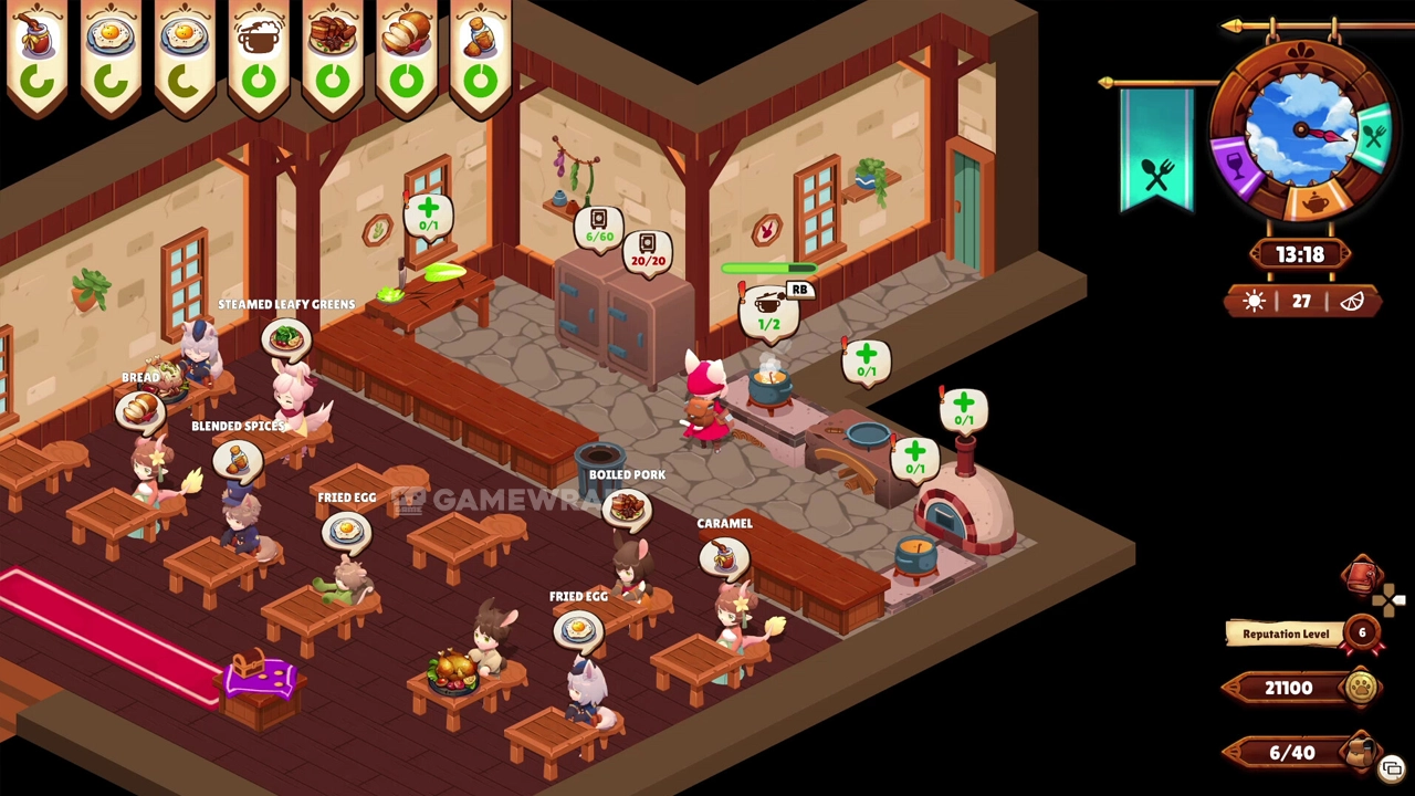 Cook over 100 different recipes from around the world, from crunchy Popiah rolls to rich Kaya jam, from double-fried crispy chicken with zesty lemon to sweet treats piled high with berries. Get the right dishes to the right customers, and customize your kitchen and dining hall with the help of local artisans.