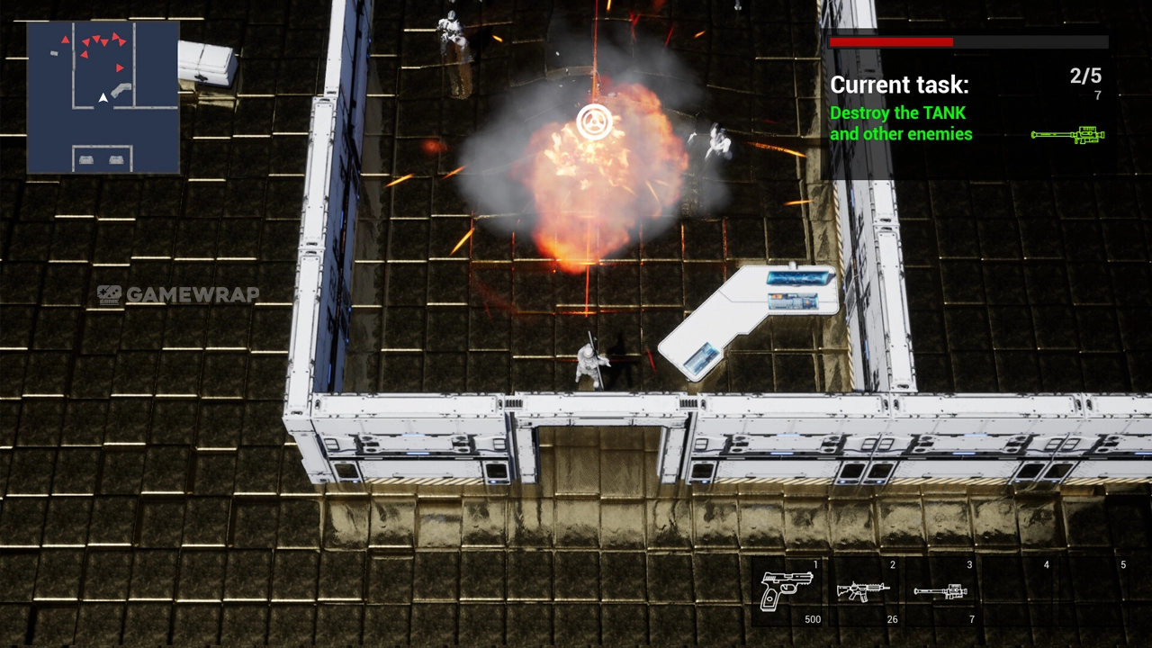 You must navigate through five maps, facing a variety of enemies, including shotgunners, snipers, melee fighters, kamikazes, and more.