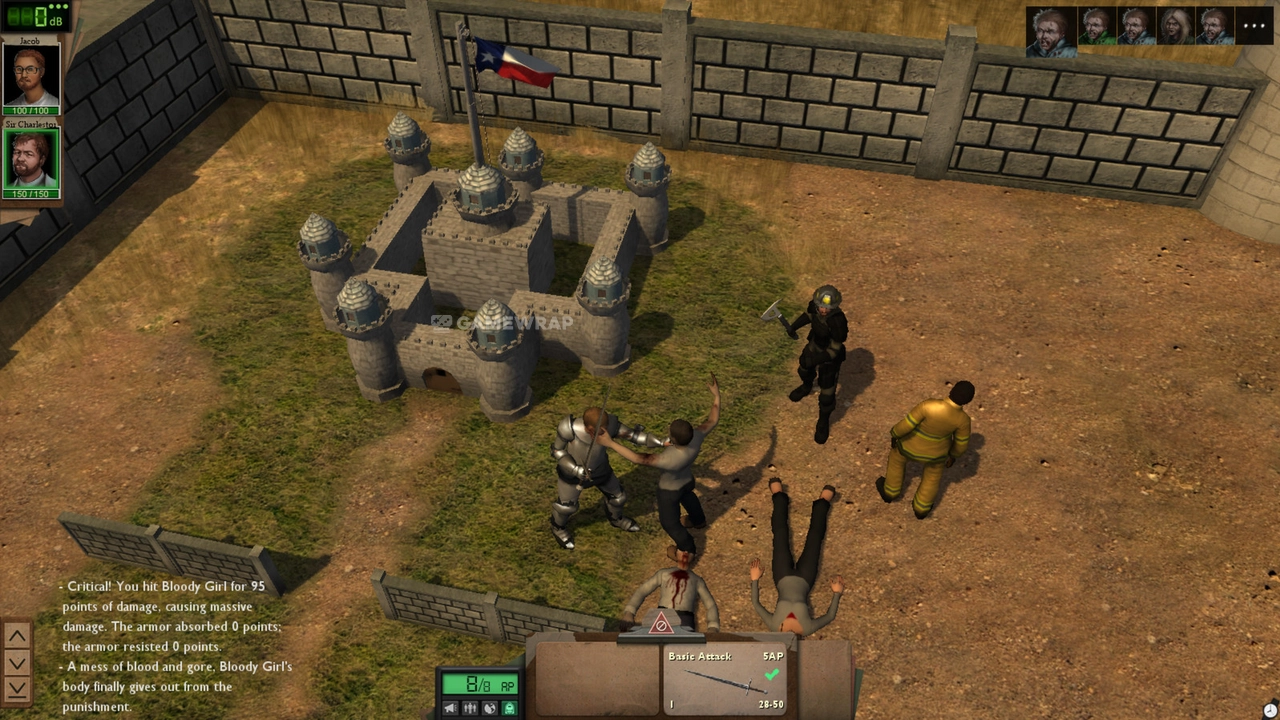 Combat encounters are turn-based, where players control a party of survivors against zombies and other threats. Tactical positioning and resource management play crucial roles in battles.