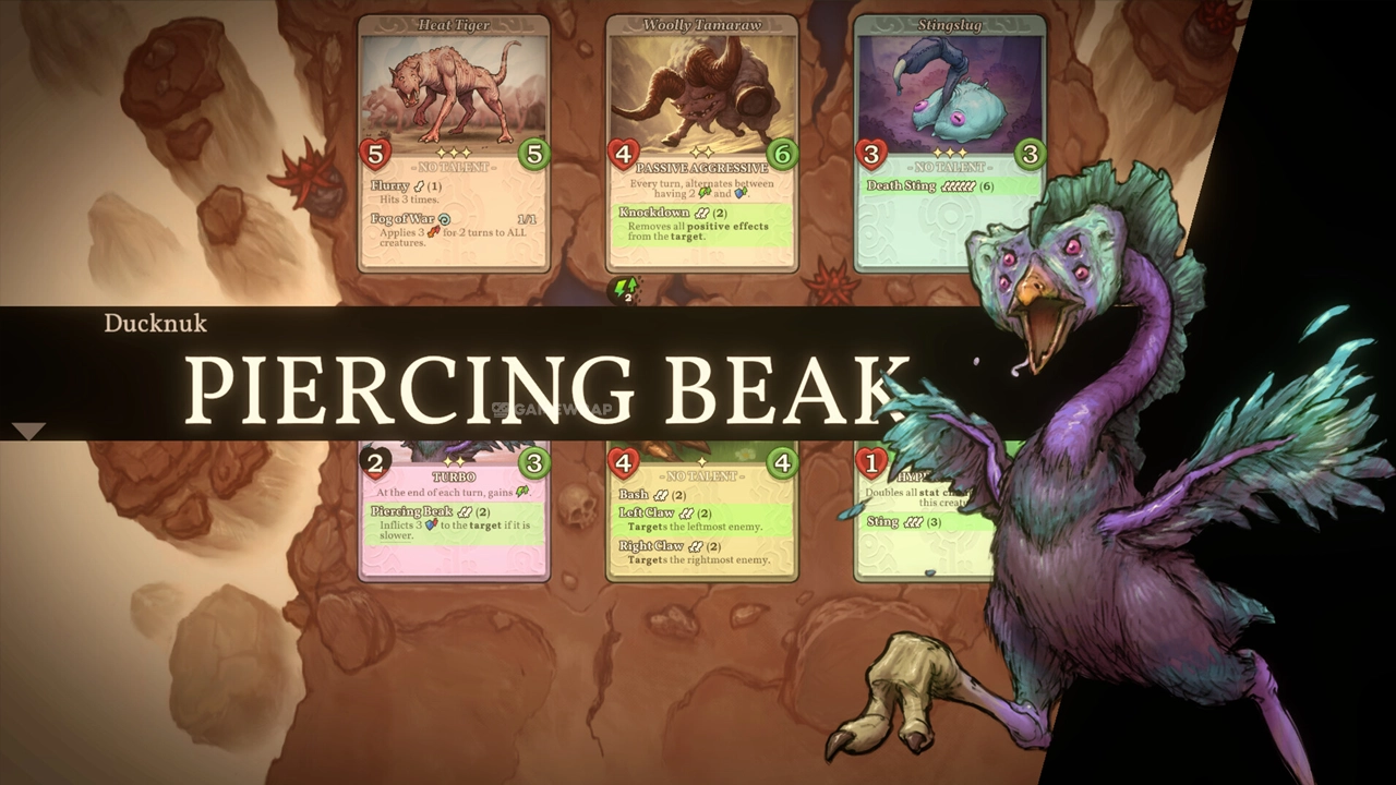 In this game, cards are not simply handed out to you; you have to tame your enemies to add them to your deck! But be careful, when one of your creatures dies, the card is gone forever!