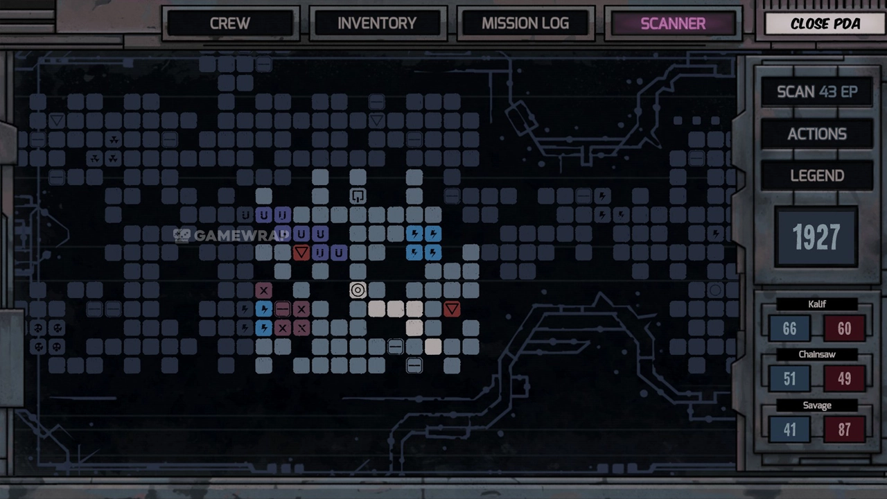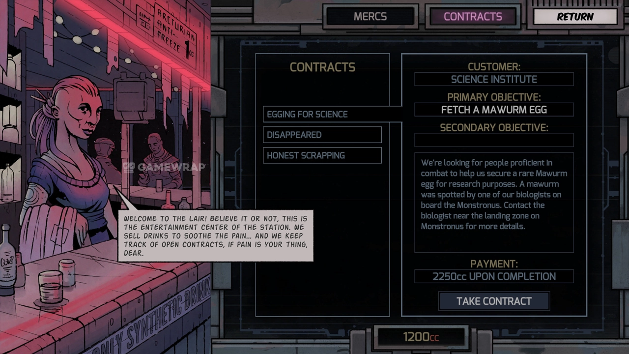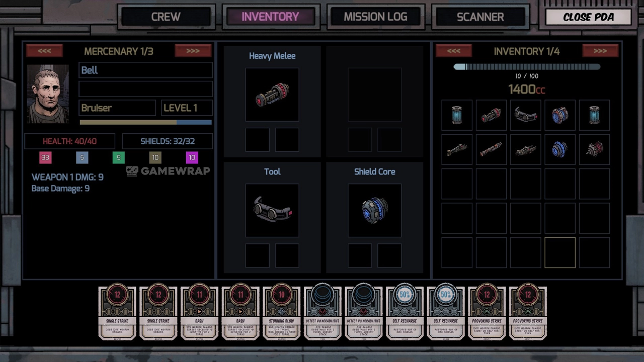 The scavenger's home ship allows you to heal and level up your mercenaries, recruit new ones, equip them, upgrade their gear, or recharge energy for life support during missions.