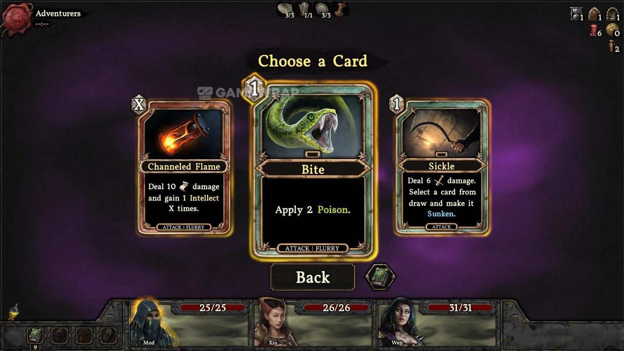 The hero party system allows players to enlist three out of six possible champions at the start of their run. Each hero has cards, abilities and equipment dedicated to their class, adding an extra layer of planning and strategy with each descent.
