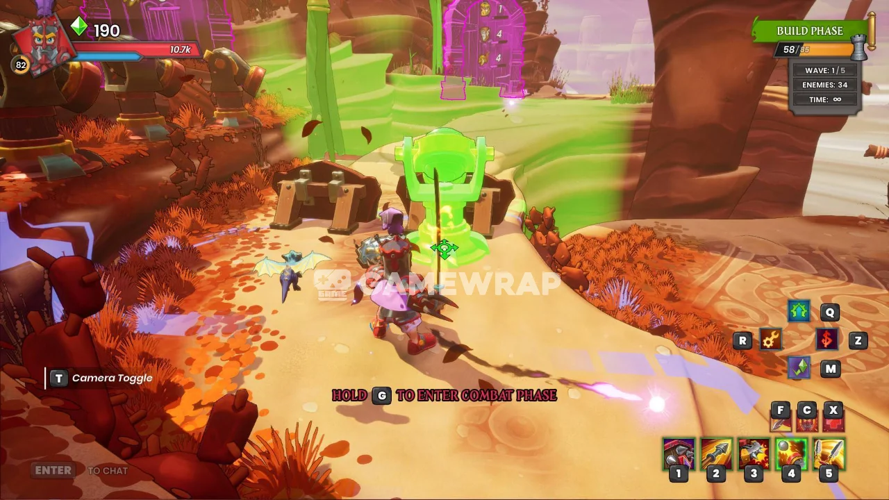 The map is a recreation of the popular King's Game map from the original Dungeon Defenders game. The map is a large, open arena with a variety of different terrain features.