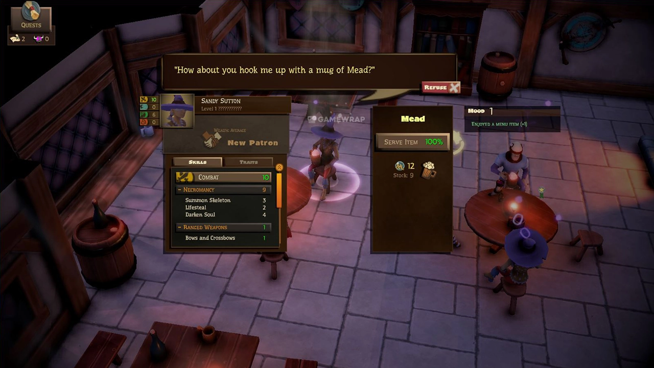 A diverse array of characters from over 20 classes and backgrounds will visit your tavern. Mages, warriors, assassins, and more will be at your service! Forge friendships over drinks and uncover their secrets. Between quests, utilize their experiences, level them up, and shape their destinies.
