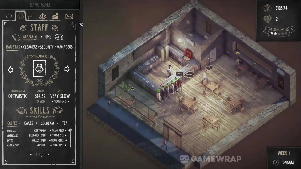 Espresso Tycoon is a coffee shop simulator. Create your brand, decorate the coffee shop, manage your employees, and take care of your customers.