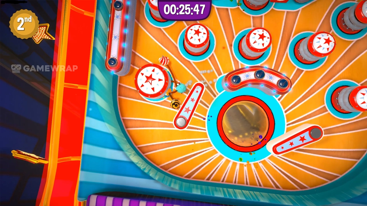 Every course in Fling to the Finish has a unique theme and style. Race through floating parks, giant casinos, and even worm-filled asteroid fields to reach the finish line!