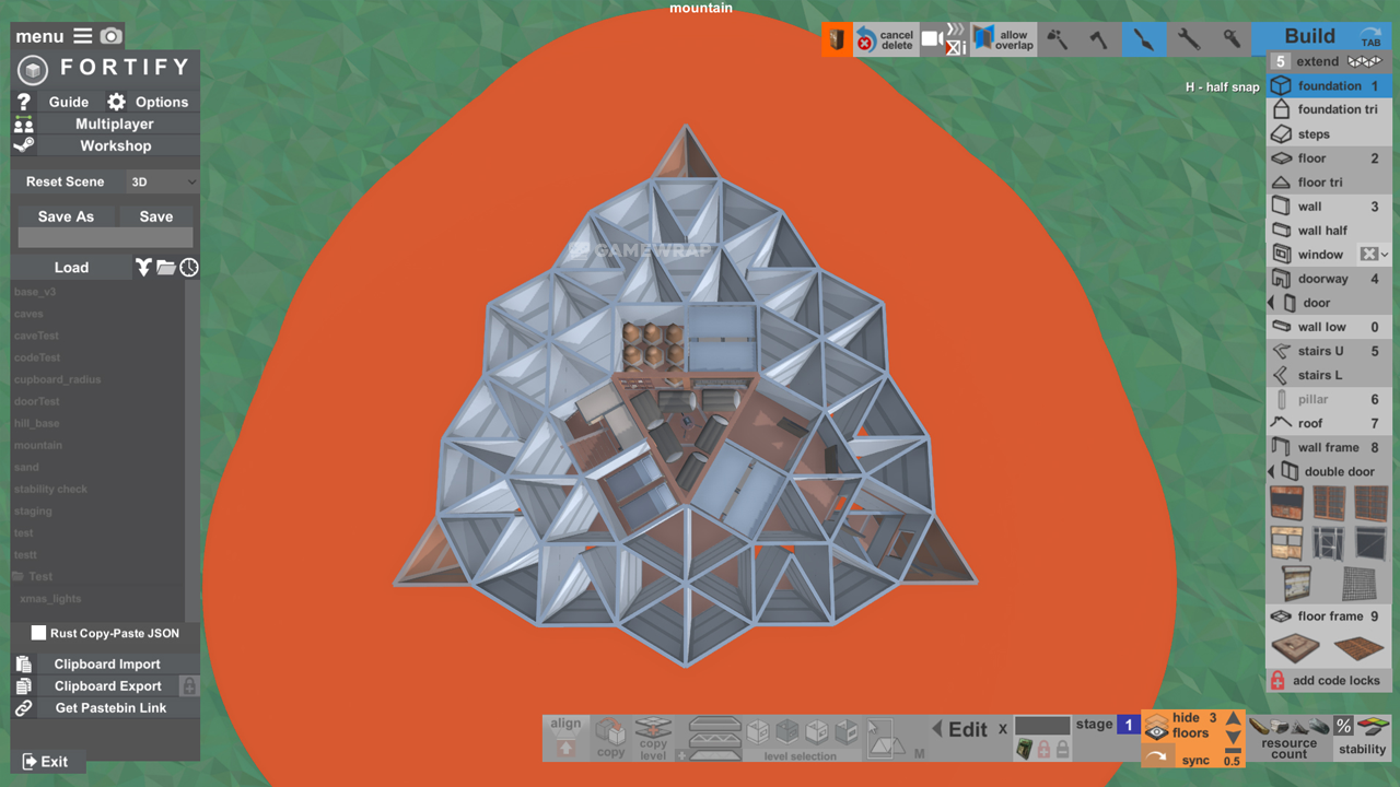 Fortify is a base designer for Rust. Featuring the same parts, placement rules, and conditional roof shapes but with extra tools to plan your base faster. Loads almost instantly with low memory usage, and can easily run while in Rust to use as a reference when building the real deal.