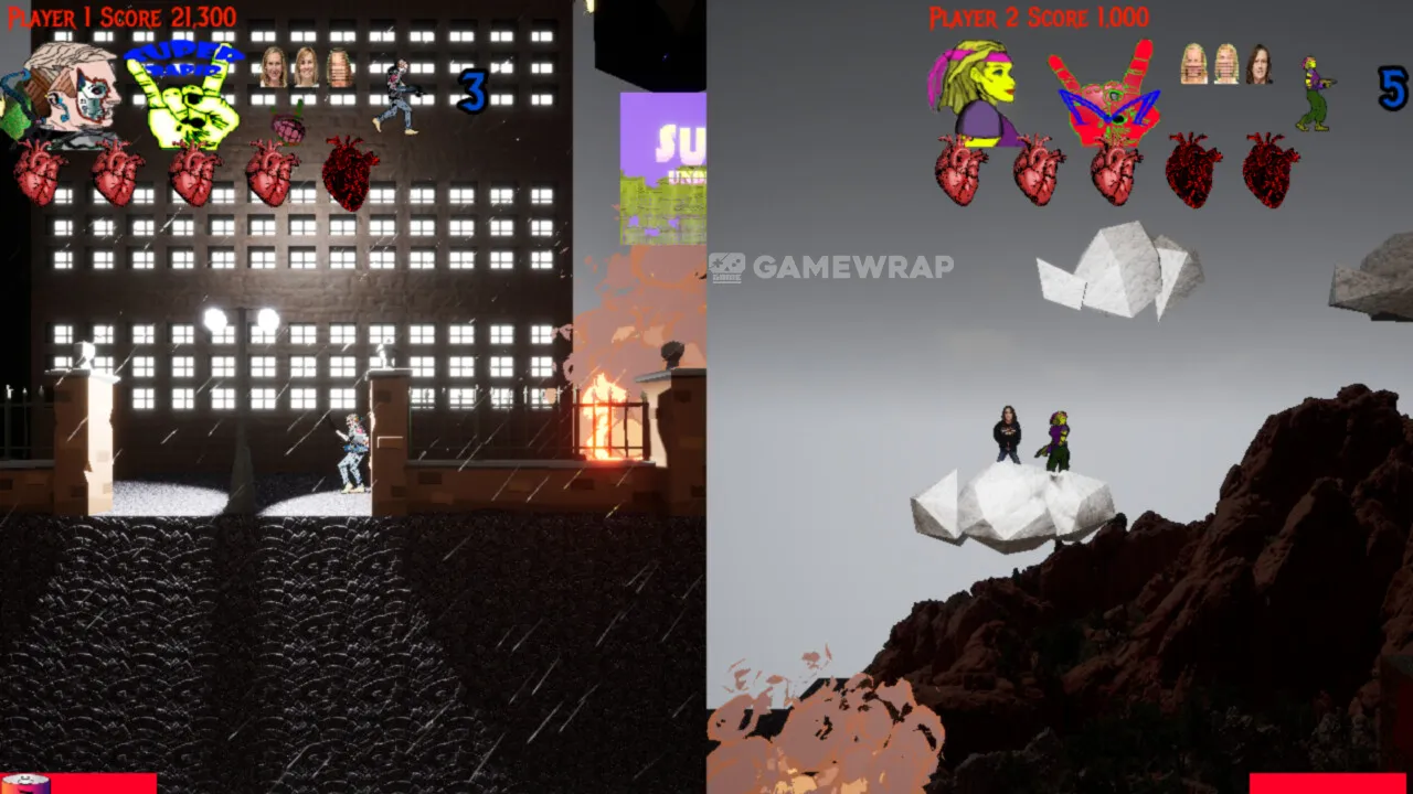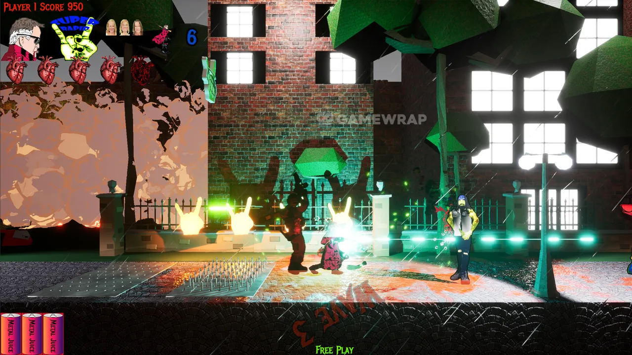 The Heavy Metal Titans! Slash, shoot, and pound your way through a violent alien war, spanning over multiple timelines with a heart-pounding heavy metal soundtrack, all while the action is called by legendary game announcer, Tim Kitzrow! So grab a controller and light ‘em up!