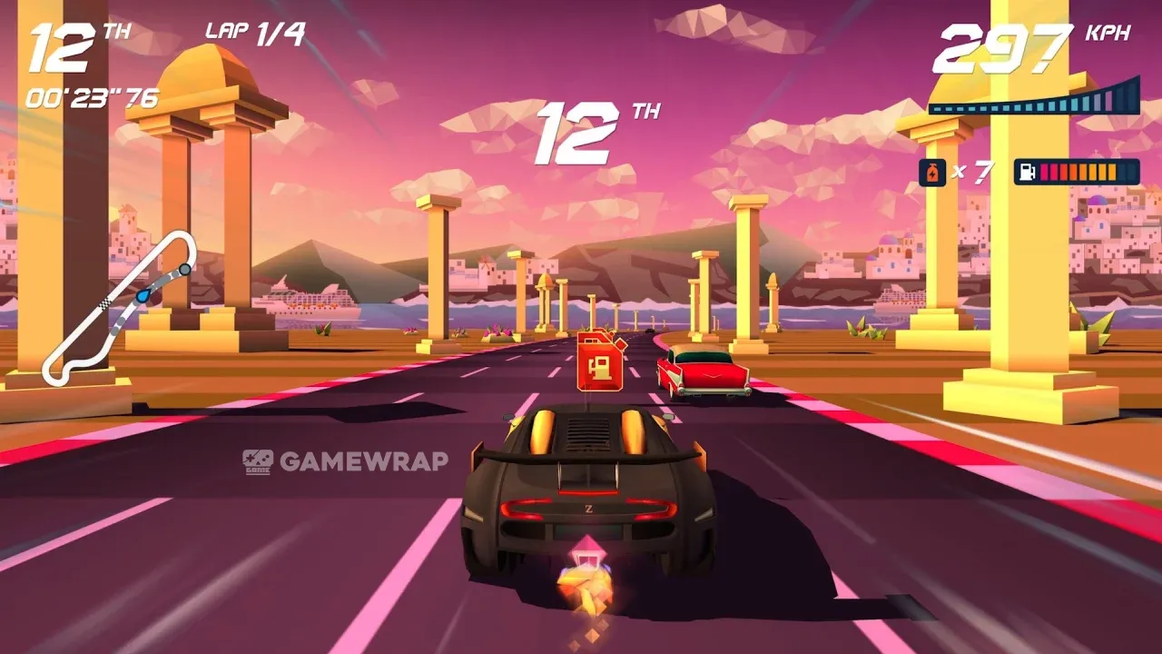Each curve and each lap in Horizon Chase Turbo recreates classic arcade gameplay and offers you unbound speed limits of fun. Full throttle on and enjoy!
