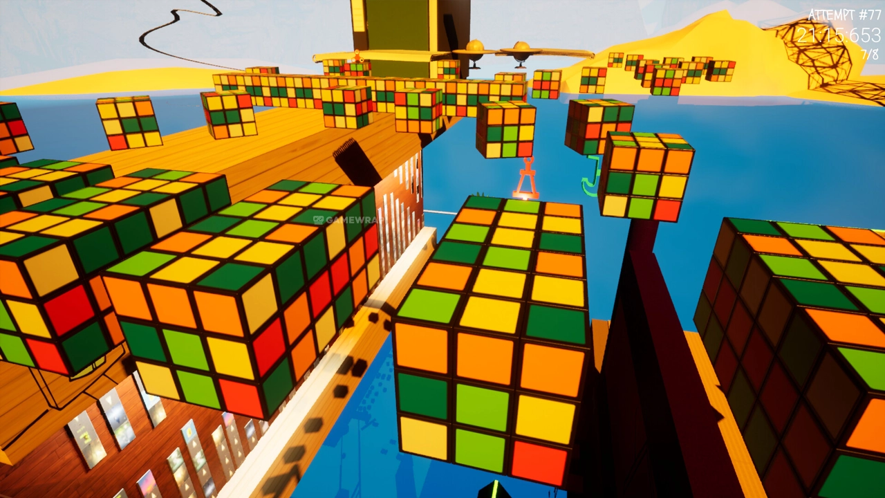 Separate from the main climb, simple and small practice rooms offer a chill ‘no-consequences’ environment to practice the basics of each movement mechanic and help you prepare for the main level's unpredictable challenges.