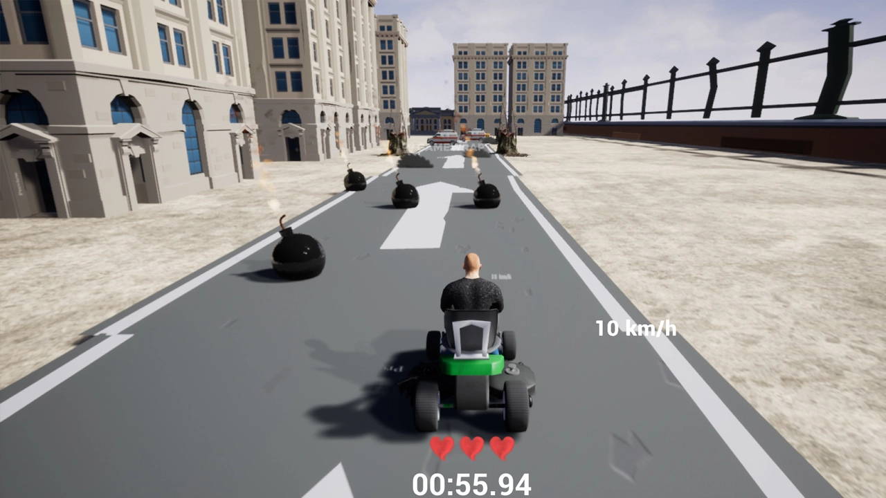 Download Lawnmower Game Mortal Race a fast-paced racing game where you control a lawnmower, navigate challenging tracks filled with obstacles and enemies, and race against the clock to reach the finish line under 60 seconds.