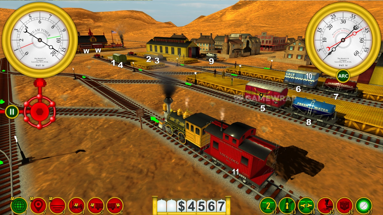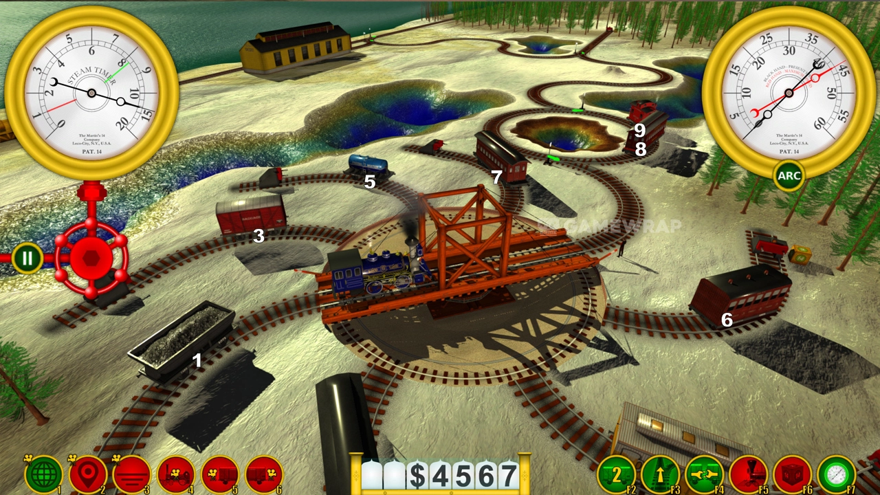 Each car is numbered, and you have to couple them in ascending order: 1, 2, 3, 4, 5, etc. There are also secondary goals, like parking cars in a workshop or loading/unloading them in a factory or mine.