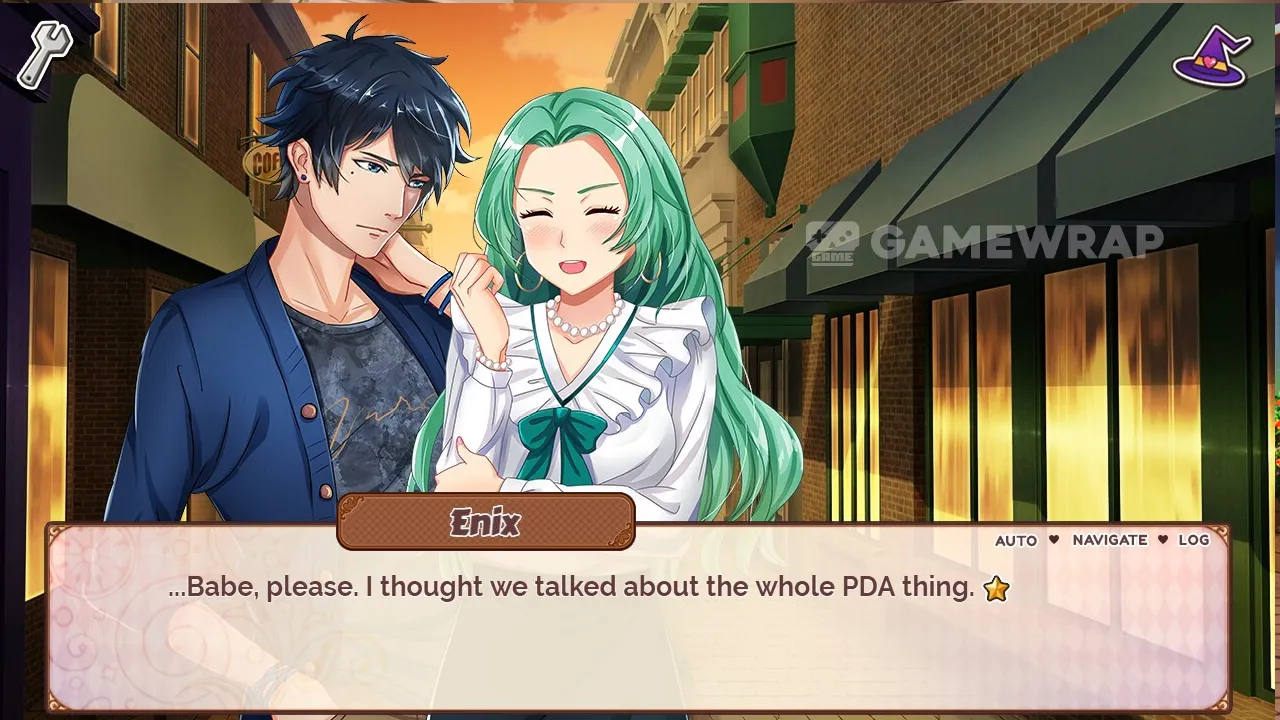 - Navigation System: Alongside manual save slots, our game uses a "Navigate" feature which allows players to revisit previously unlocked chapters in the story through an auto-save function. With the navigation feature, you can easily go back in time and change any choice or revisit any steamy kiss scenes.