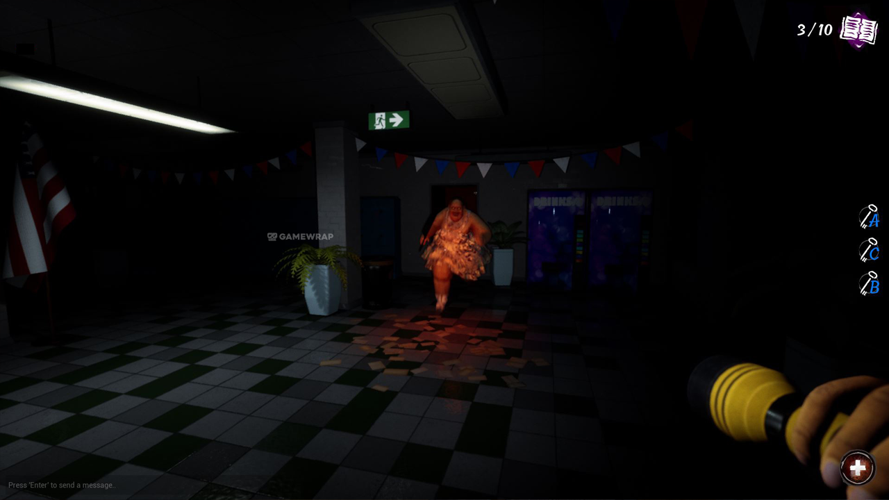 Find keys to unlock doors. Heal each other with medkits. Play smart and work together. Or get whacked with a pan.