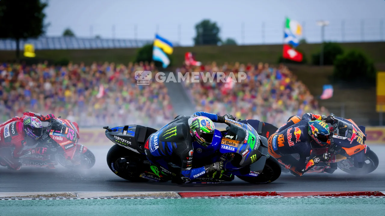 The feature highest in demand is now in the game: dynamic weather will not only make the races more realistic, but also more unpredictable. Manage the arrival of rain or of an unexpected clearing up with Flag to Flag: change your bike at the most appropriate moment to get a strategic advantage over your opponents.