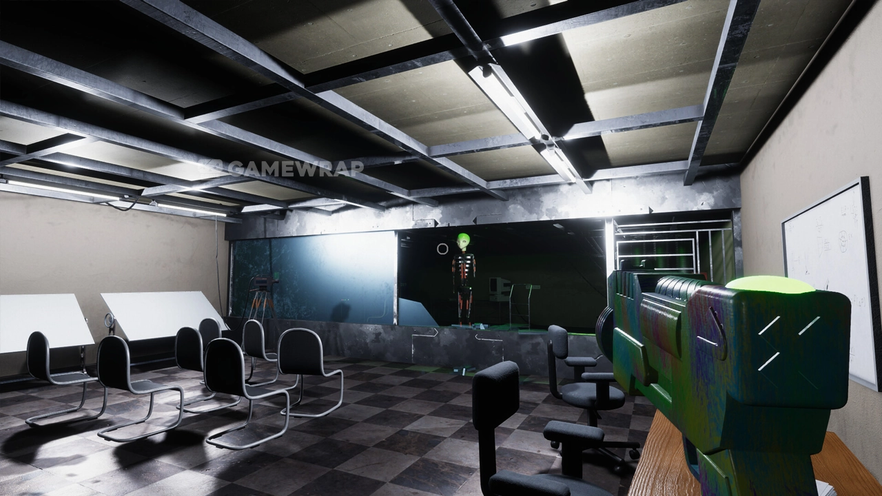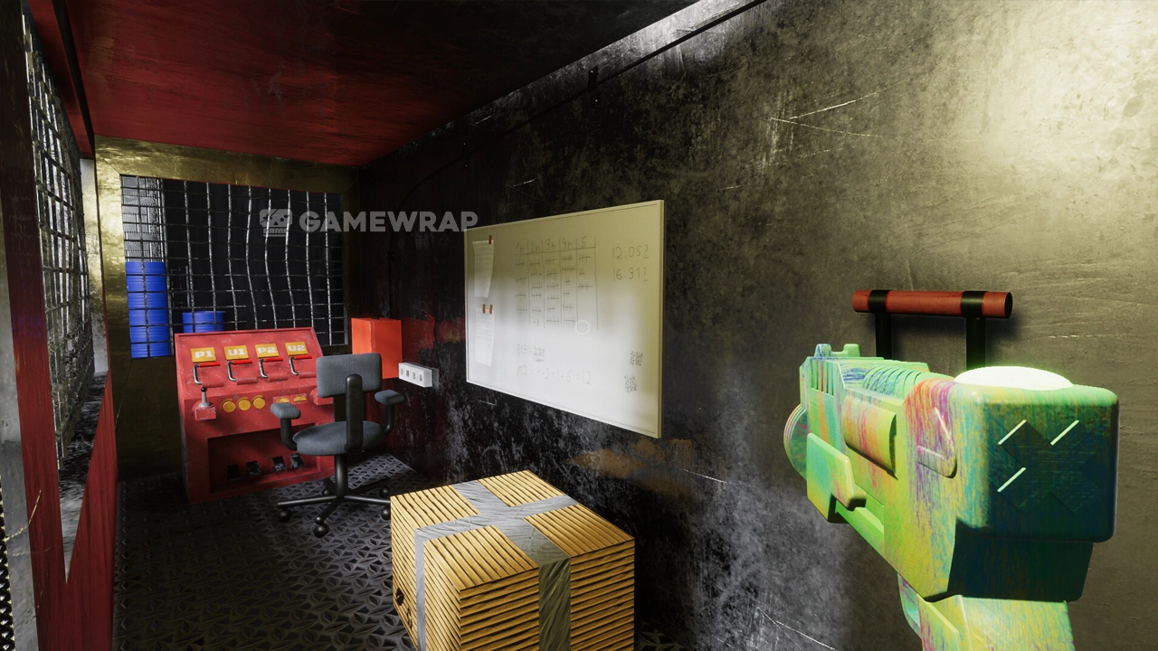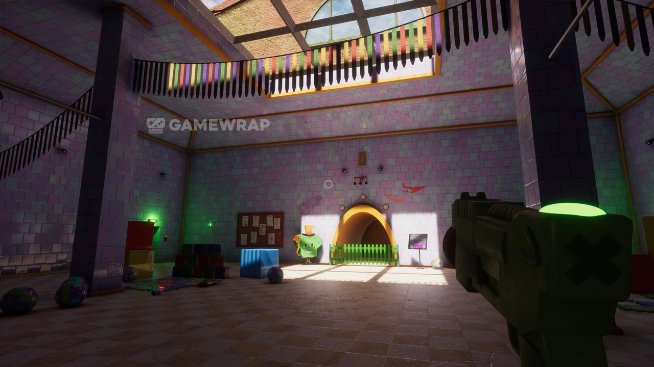 The detective enters the abandoned Maybedi Industrial Complex brandishing a toy gun. The detective uses the toy gun with small balls loaded to manoeuvre through the abandoned building and solve puzzles by firing precisely.