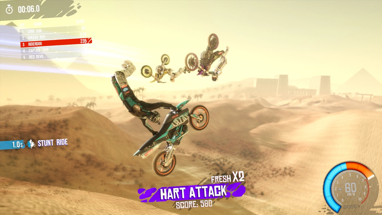 Unleash over 55 freestyle tricks to earn Nitro boosts and dominate the competition. Backflips, flips, whips, and more are at your disposal!