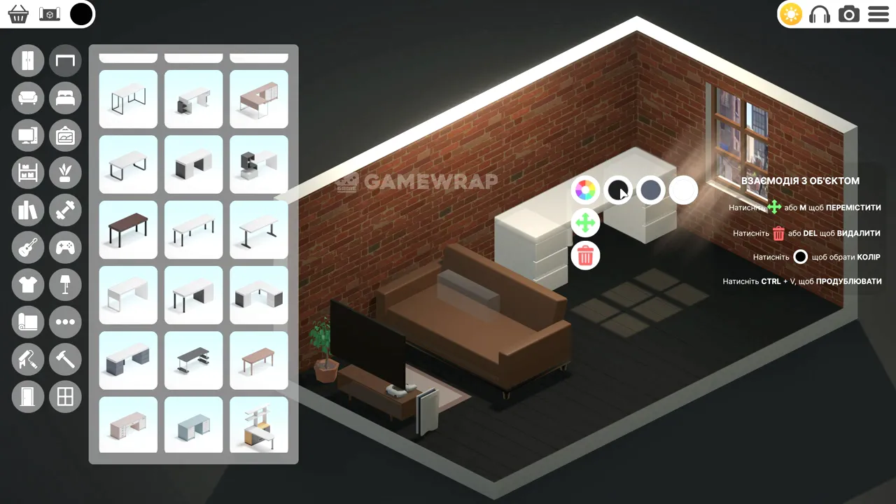 Arrange the furniture the way you want. No placing by the grid - complete freedom of action. If you don't like where you put a piece of furniture, just move it at any time.