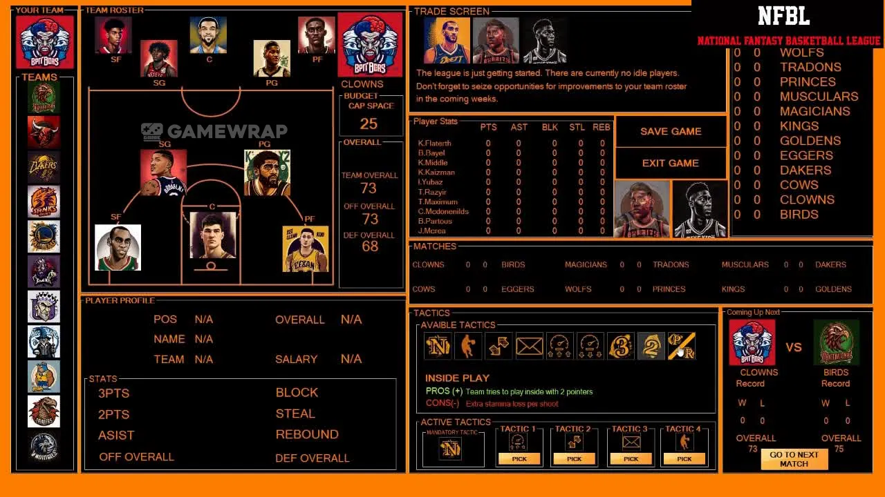 NFBL(National Fantasy Basketball League) is a mini-stylish fantasy basketball management and strategy game where teams are created from scratch every season, and that allows you to create your dream squad with the budget given to you and compete in the Fantasy league.