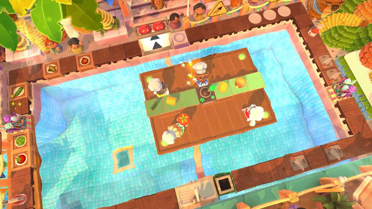 Travel through teleporters, across moving platforms and save time by throwing ingredients across dynamic kitchens that shift and evolve. Some kitchens even whisk your chefs away to new locations.