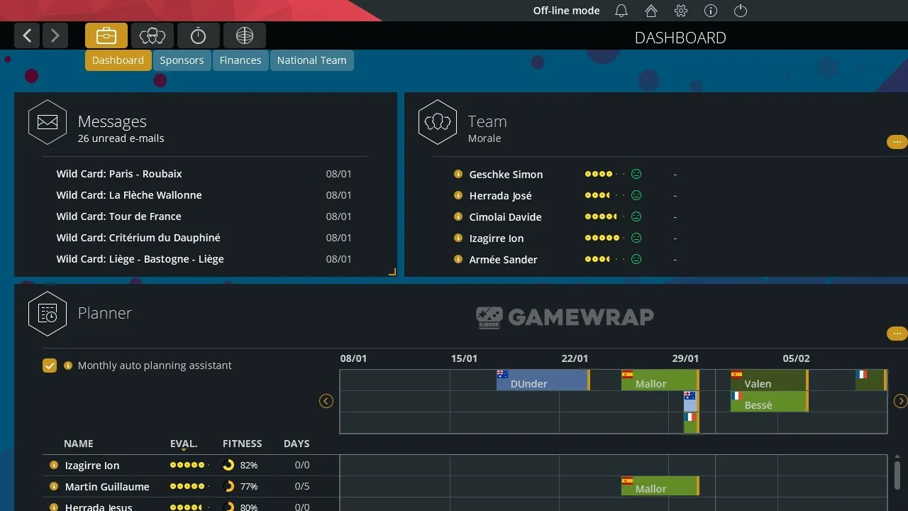- SCHEDULE: Manage your riders' schedules, listen to their requests and improve their well-being to keep their morale high all season long.