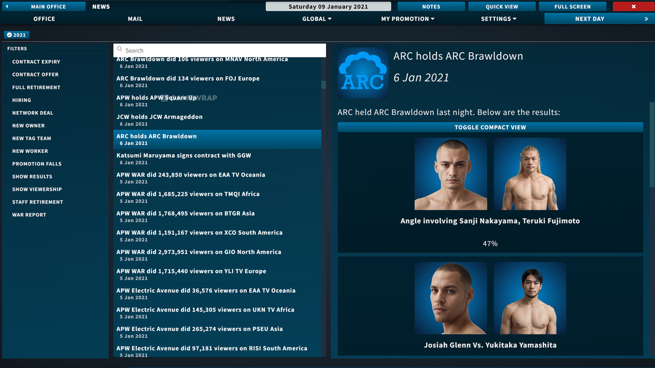 Download Pro Wrestling Sim a text-based pro-wrestling booking simulator. Control a wrestling promotion, decide your roster, and create storylines, feuds and matches.