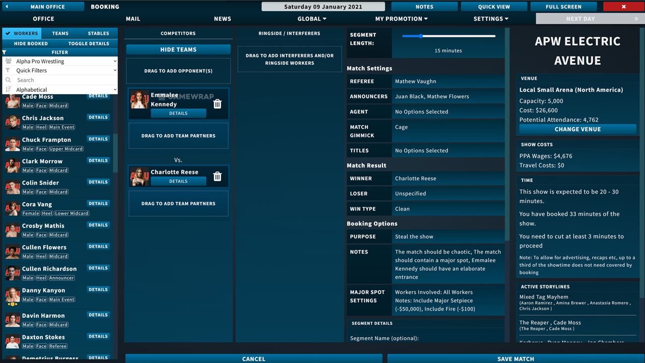 Free Download Pro Wrestling Sim a text-based pro-wrestling booking simulator. Control a wrestling promotion, decide your roster, and create storylines, rivalries, and matches where the winners and losers are in your hands.