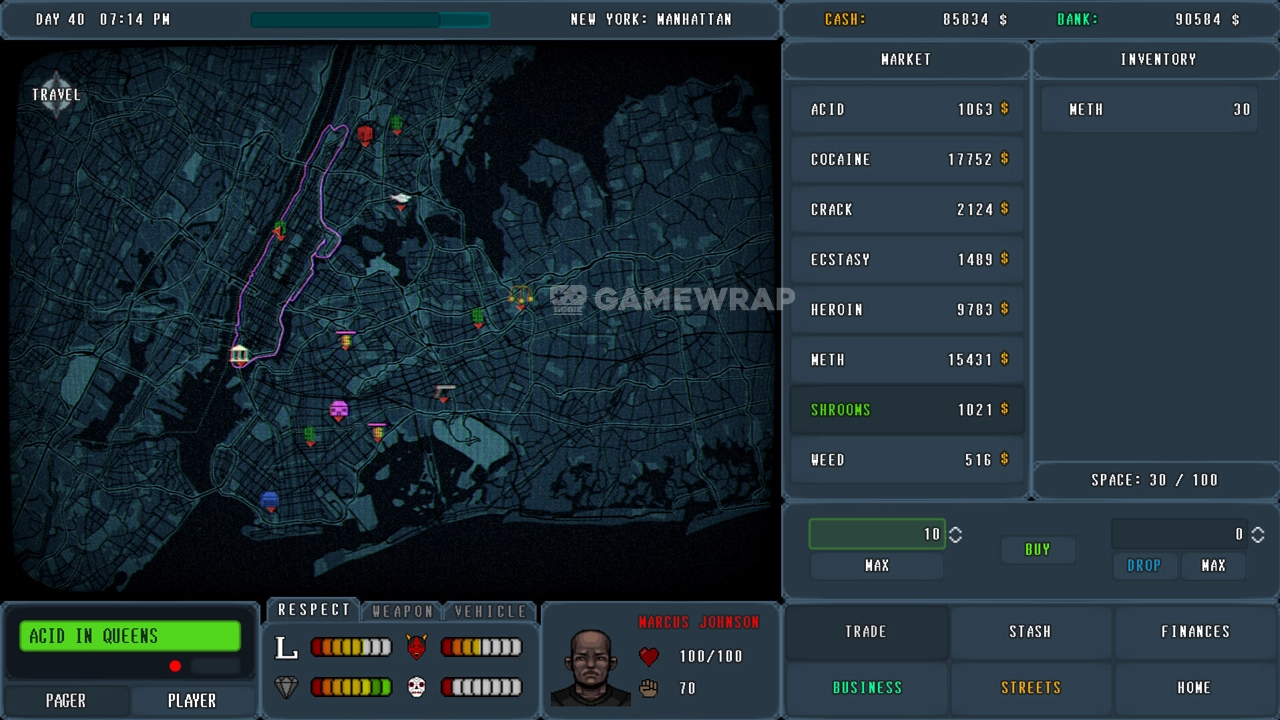 Free Download PUSHER - Drug Tycoon for PC, A Thrilling business tycoon sim where you step into the shoes of a drug dealer in the 1980s USA. Your main goal is simple: BUY LOW and SELL HIGH.