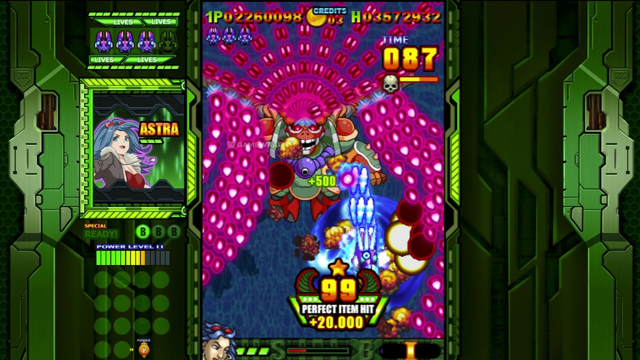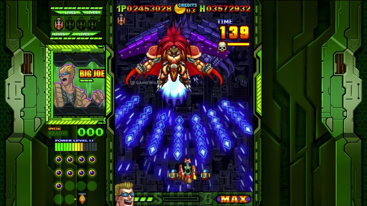 You can use a mass bombardment by releasing powerful shells. Firepower rises due to the collection of megabube and t.NS. At the end of each level, there will be a serious boss occupying half the screen. Each leader has its unique movement patterns.