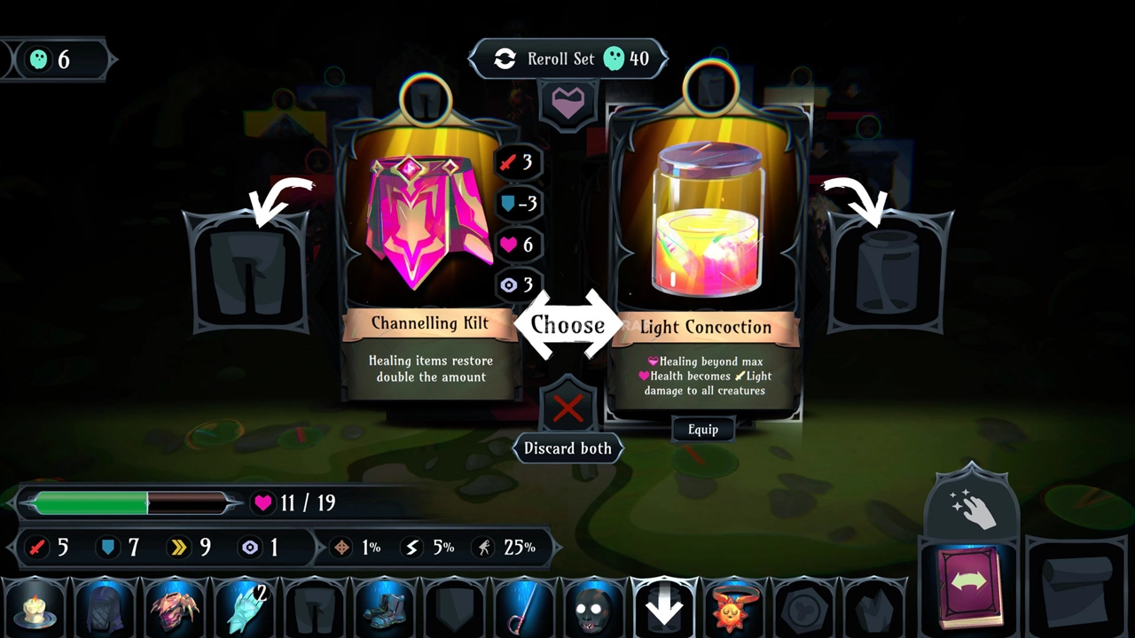 Delve into randomly generated ring dungeons where encounters come to you! Observe and plan your route. Will you go for the loot or backstab a creeping horror? As you scavenge, fight, and sneak to new encounters, the ring reacts to your actions.