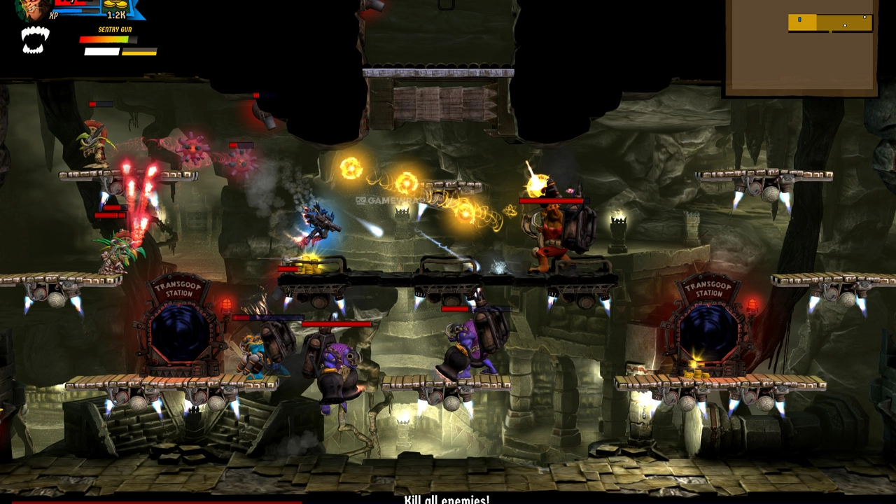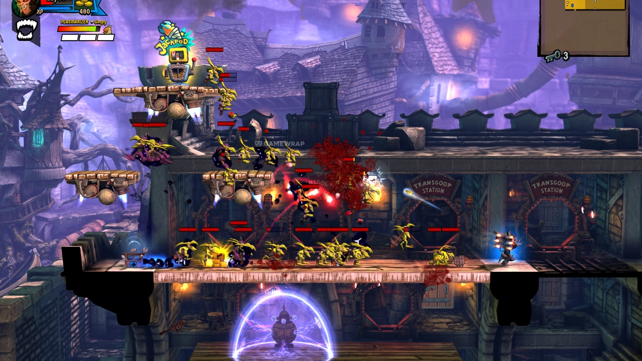 An action-packed platform shooter mashed-up with roguelike and RPG elements, crazy 3D graphics, and co-op multiplayer for one to 4 players. The game takes place in the dieselpunk city of Ravensdale, built on “goop,” a mysterious substance that powers technology but also mutates its citizens into monsters. Players assume the role of rebel “Stormers” seeking to take back their city from orcish and mechanical hordes.