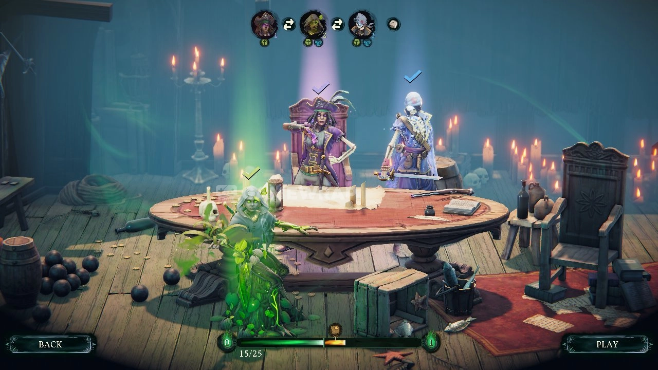 The powerful time-manipulating magic of your ghost ship is yours to wield. Pause time to consider your strategic choices or queue up multiple character actions.